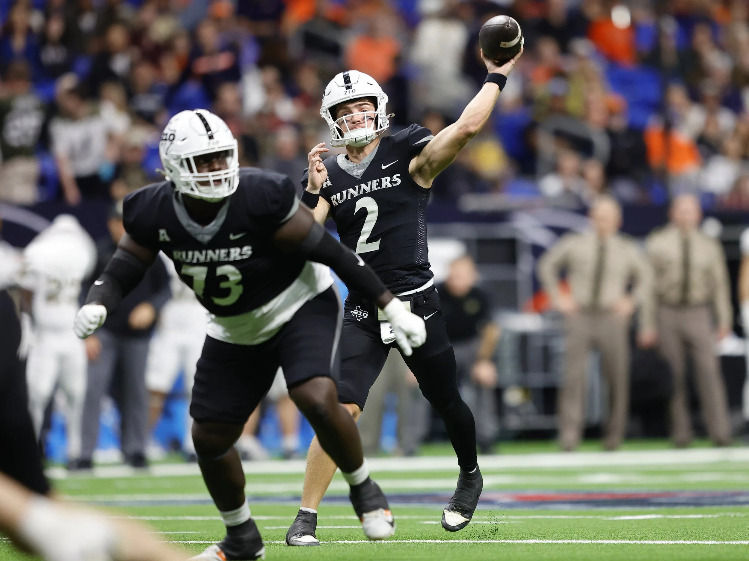 Army’s offense began finding success in short, consistent gains, converting key third downs and moving steadily into UTSA territory. Their offensive line dominated the line of scrimmage, creating lanes for backs to pick up significant yardage on inside runs. UTSA remained patient, using a mix of short passes and occasional designed runs to stretch the field and force Army’s defense to stay disciplined in coverage. The contrast in approach was apparent with every snap. In the second quarter, Army scored its first points on a sustained drive that drained valuable clock and brought the game to 7–7. The score reflected not just points, but the strategic advantage of controlling possession time. UTSA answered with a field goal, maintaining a slight edge and demonstrating the effectiveness of their balanced attack against a disciplined Army defense. Time of possession began to tilt increasingly toward Army. The Black Knights consistently held the ball for extended drives, limiting UTSA’s chances and forcing the Roadrunners to play catch-up.