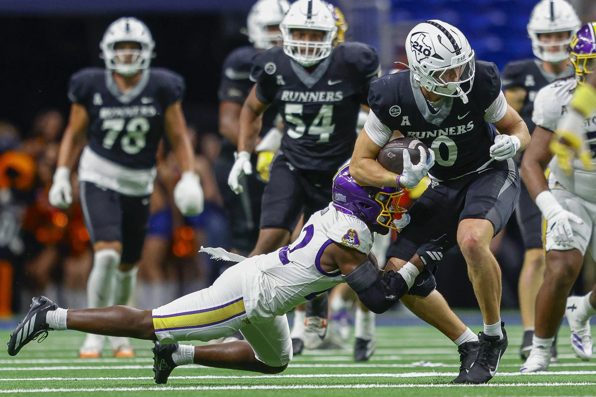 The UTSA Roadrunners take the field in the Alamodome against the East Carolina Pirates with a chance to make a statement, and from the first play it’s clear they’re not just here to compete — they’re here to dominate.On the opening drive, UTSA strikes quickly, moving the ball with confidence and hitting their rhythm early. The offense looks sharp, and the crowd senses it’s going to be one of those days. Quarterback Owen McCown is poised right away, spreading the ball around and finding receivers in space. His accuracy keeps drives alive, and the Pirates’ defense struggles to keep up.