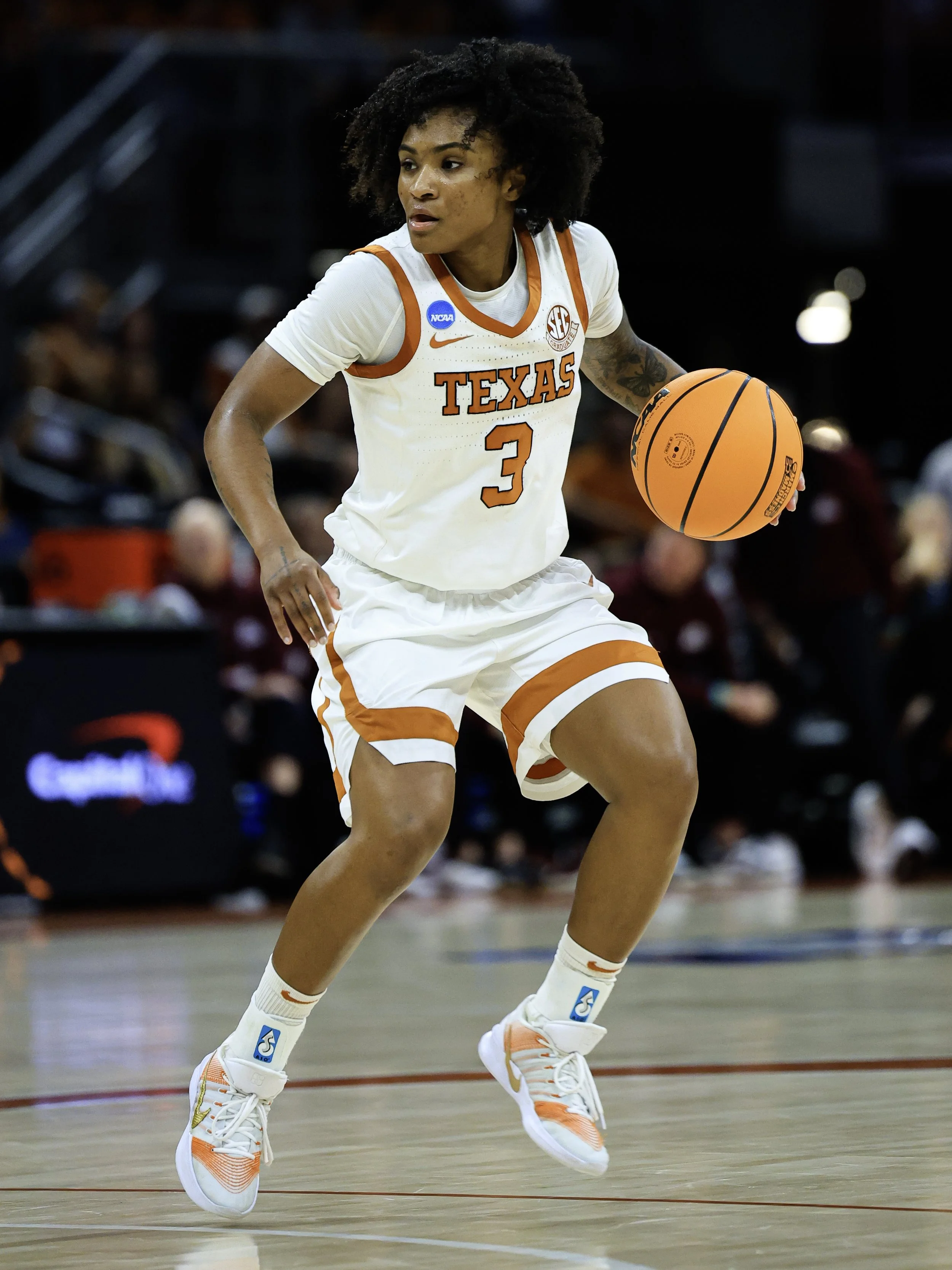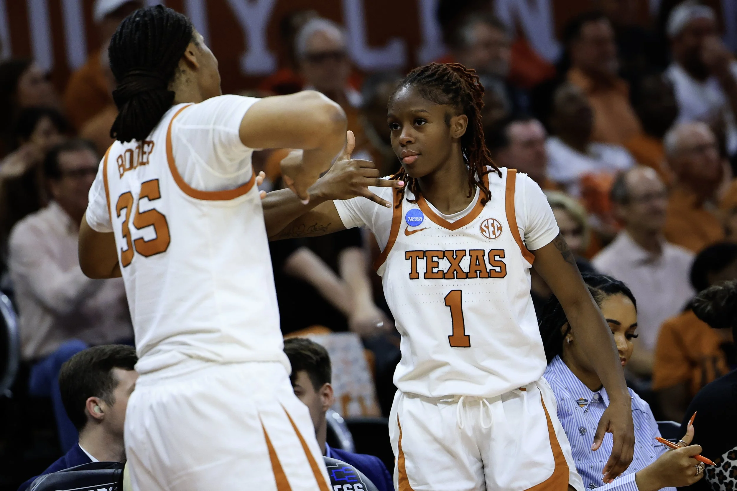 Coming out of halftime, Texas kept the intensity, maintaining pressure on ball handlers and continuing to crash the boards. The offense stayed balanced, with multiple contributors scoring from midrange and three-point range. Missouri State had brief runs, hitting jumpers and getting offensive rebounds, but Texas answered every time with smart ball movement and points in transition. Depth remained an advantage for Texas, as fresh legs on both ends of the floor helped sustain pressure. Transition opportunities and smart passing were hallmarks of Texas’ game, creating open looks inside and outside. Missouri State adjusted, switching defenses and running set plays, but Texas anticipated well and forced low-percentage shots.